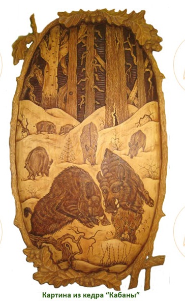 Картина резная, Кабаны, в цвете ( 60х100 см) 1980