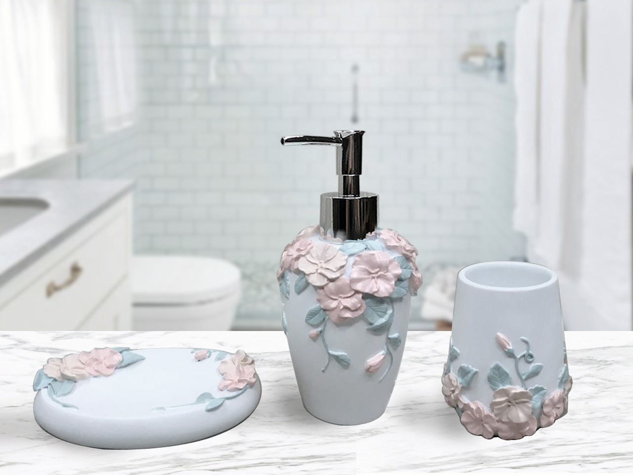Дозатор для жидкого мыла 1 шт Стаканчик для зубных щеток 1 шт Мыльница для твердого мыла 1 шт