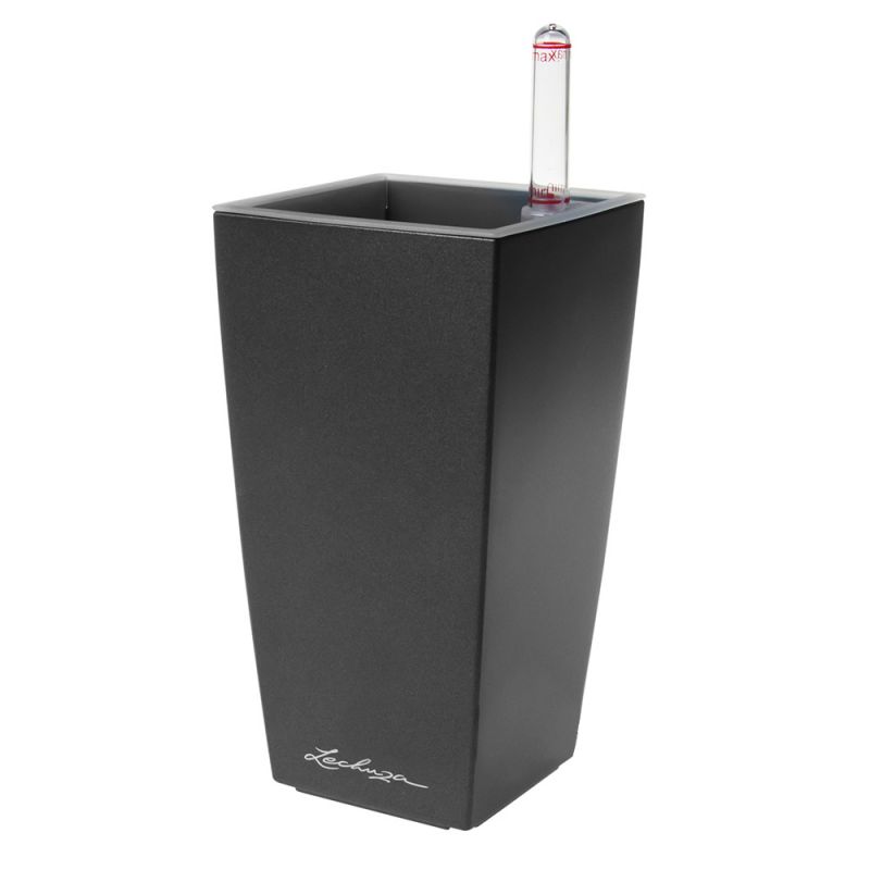 Кашпо Lechuza "Mini Cubico Complete charcoal metallic" (пластик), 9x9xH18 см