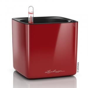 Кашпо Lechuza "Cube Glossy Complete scarlet red high gloss" (пластик), 14x14xH14 см