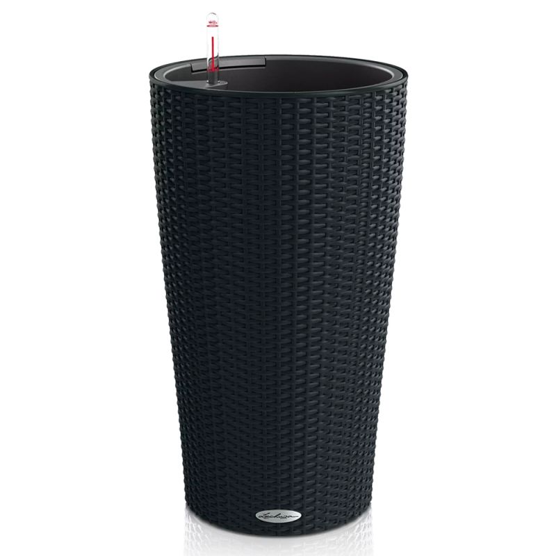Кашпо Lechuza "Cilindro Cottager Complete graphite black" (пластик), D23хН41 см