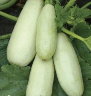 Раннеспелый урожайный гибрид. Период от полных всходов до начала плодоношения 34-45 дн. Растение кустовое, с коротким главным стеблем. Плоды цилиндрические, с гладкой поверхностью, массой 0,5 – 1 кг. Кожура зеленовато белая, без рисунка, тонкая, твердая. Мякоть белая плотная, несладкая
