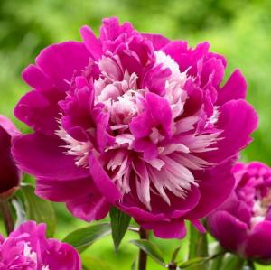 Пион молочноцветковый Селебрити высокий раскидистый куст – может достигать 100 сантиметров. Листья темно-зеленые, слегка ажурные, к наступлению заморозков их оттенок становится багровым. Цветет «селебрити» в конце мая, в июне (тогда как у некоторых других разновидностей этот процесс начинается еще в начале мая). У него крупные, пышные цветки всех оттенков розового и белого, в диаметре доходящие до 15 сантиметров.На фото пиона «селебрити» видно, что цветок не отличается любовью к порядку – лепестки у него торчат в разные стороны, как придется. Зато у него душистый аромат, который можно почувствовать издалека, а радует глаз своей красотой он не меньше двух-трех недель.