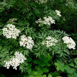Бузина черная разрезнолистная — кустарник до 3 м высоты. Листья сочно-зеленые, крупные, непарноперистые, сильноразрезнолистные, придают растению весьма привлекательный ажурный вид. После первых заморозков лист теряет свою декоративность. Душистые белые цветки собраны в крупные плоские щитковидные полузонтики. Черные блестящие плоды созревают в сентябре. Бузина любит рыхлую питательную среднеувлажненную почву, светолюбива. В затенении теряет компактность куста, листья становятся светло-зелеными, дряблыми, ослабевают рост и цветение. В условиях Москвы в отдельные годы подмерзает и в связи с этим нуждается в посадке на пень. За сезон растение полностью восстанавливается, успевает отцвести и заплодоносить.В озеленении бузина черная разрезнолистная применяется в одиночных и групповых посадках.Бузина черная (Sambucus nigra) — один из 20-ти видов бузины, отличается съедобными плодами. Данный кустарник распространен в Европе, Северной Африке, в Передней Азии. Встречается в диком виде в горах Кавказа, на Украине, в Молдавии.